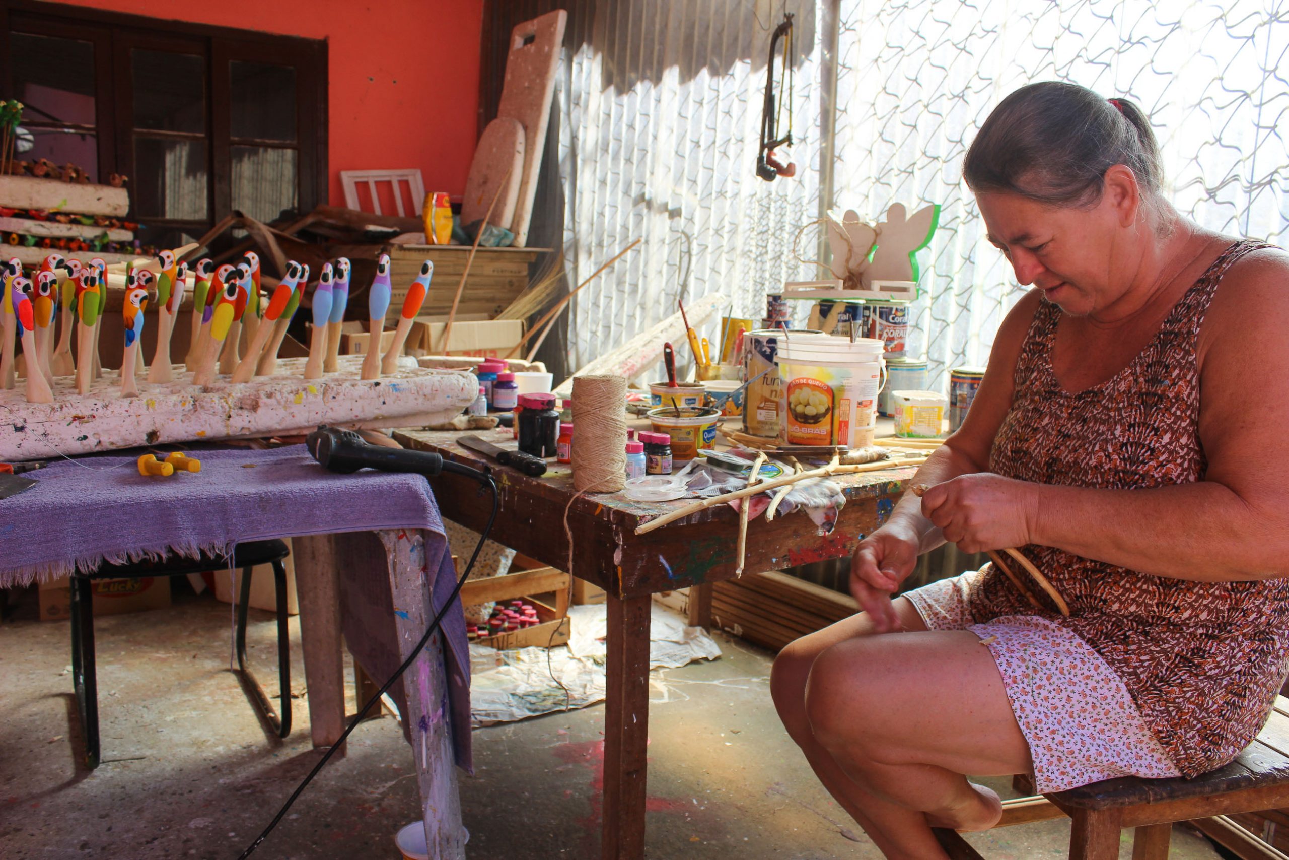 Araras de madeira no Ateliê do Nicinho. 2021 (Foto: Alexandre Ranali).